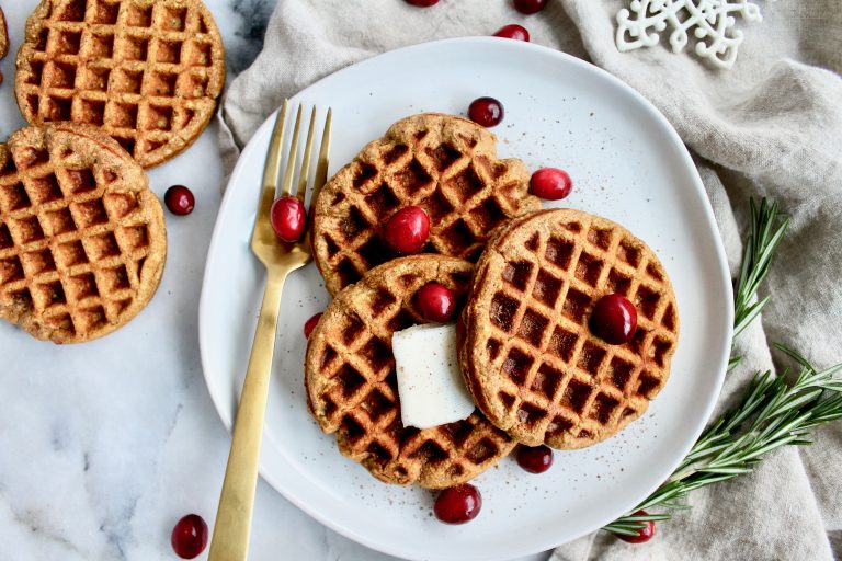 Heat and spray a waffle iron to medium-high. pour 1/3c of the batter and cook until done. place the cooked waffle on a cooling rack; this will help it stay crispy! Spray and repeat until all the batter is used.
